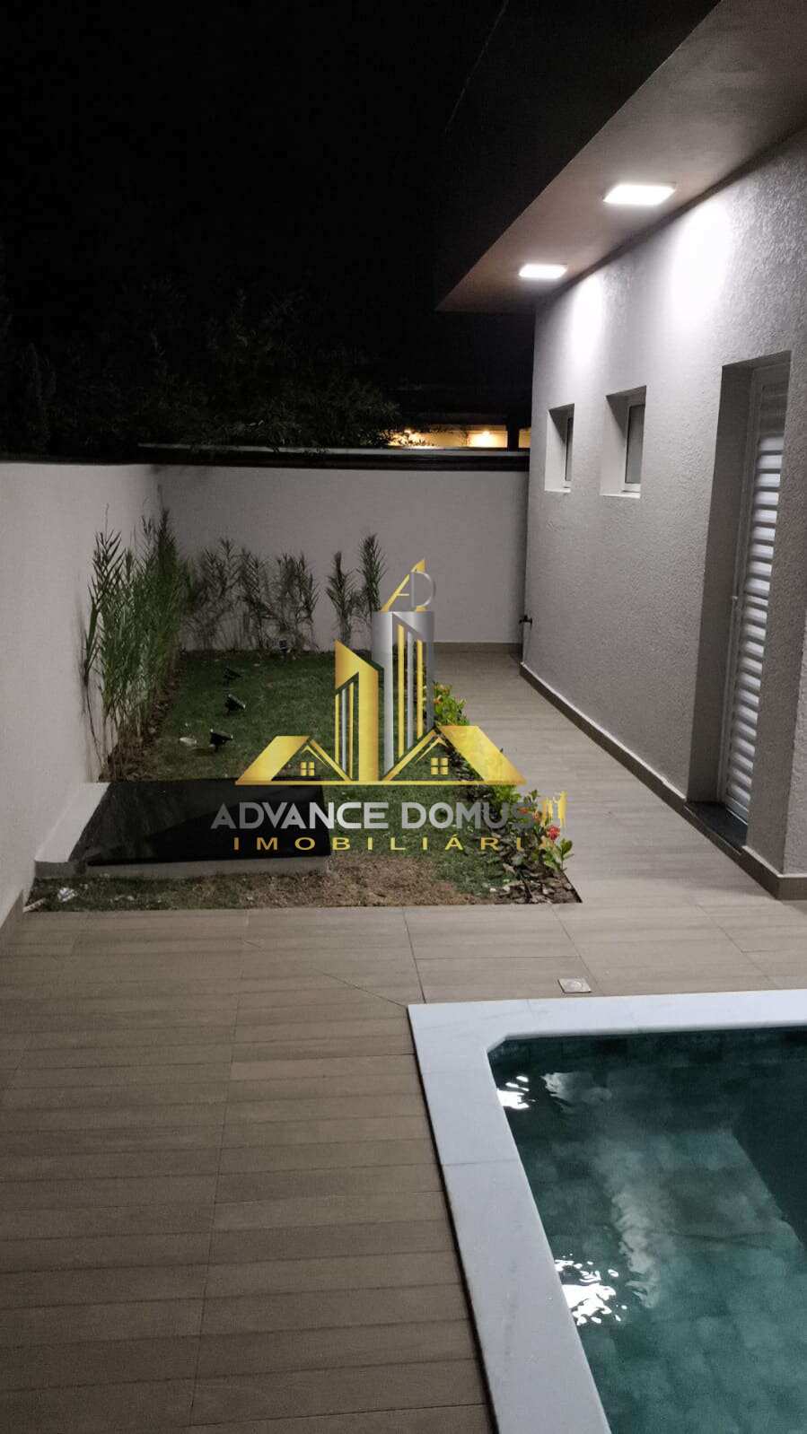 Piscina privativa com deck e jardim ao redor;