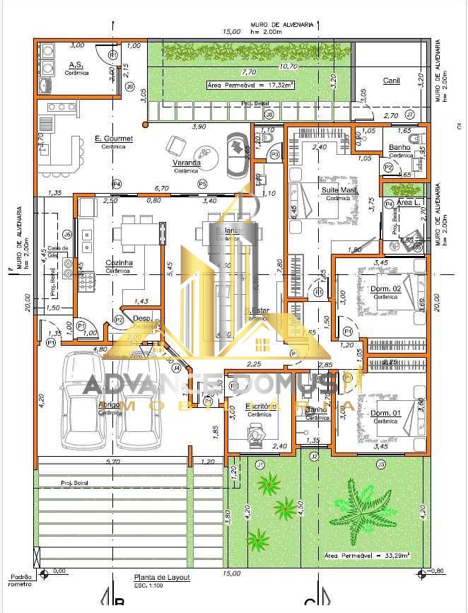 Área total do terreno: 300 m²